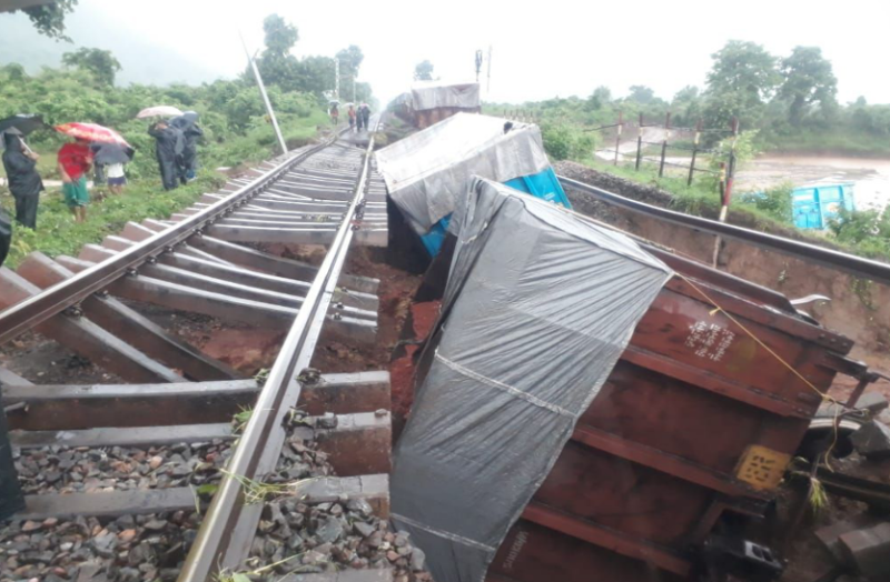 दक्षिण क्षेत्र की रायगढ़ा-तीतलागढ़ ट्रेन सर्विस क्षेत्र में पटरियों को बारिश ने धो डाला। ट्रैक के नीचे की मिट्टी बह गई। रायगढ़ा में ही अंबोडाला स्टेशन के पास मालगाड़ी के 59 बैगन बुरी तरह प्रभावित हुए हैं। कई बैगन तो बेपटरी हो गए हैं। पानी का लेवल कम होने के बाद ही मरम्मत के बाद ट्रेन सेवा चालू हो सकेगी। ट्रेन सेवा प्रभावित होने की जानकारी ईस्टकोस्ट रेलवे ने दी।