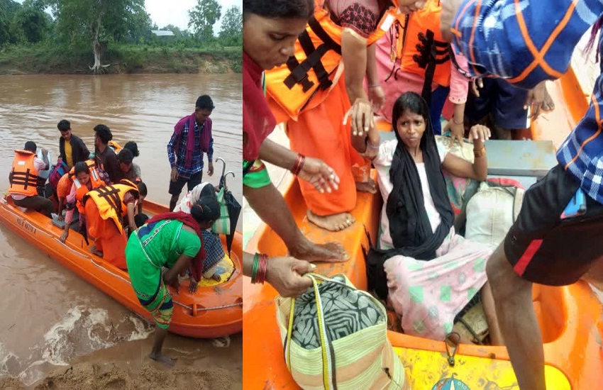 Rescue Of Three Pregnant Women : कमकानार से दो और चेरकंटी से एक महिला ने प्रसव वेदना होने के चलते विधायक विक्रम मंडावी से संपर्क साधा था। विधायक मंडावी ने इसकी सूचना प्रशासन दी। प्रशासन ने चिकित्सा दल को चेरकंटी और रेड्डी गांव के लिए भेजा गया। रेस्क्यू टीम काफ़ी मशक्कत कर उफनते नदी में मोटर बोट के जरिये सुरक्षित मौके पर पहुंची।