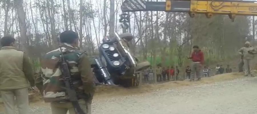 बिजनौर।बैंक ड्यूटी आैर कावड़ यात्रा की व्यवस्था कर वापस थाने लौट रहे पुलिसकर्मियों की जीप एक स्कूली वैन में टक्कराने से बचाने के प्रयास में अनियंत्रित होकर खेत में जा गिरी। जीप गिरने से उसमें सवार एक दरोगा समेत तीन लोग घायल हो गये। आसपास के लोगों ने जीप सवार पुलिसकर्मियों को खेत में पड़ा देख हादसे की सूचना थाना पुलिस देकर गांव के लोगों ने सभी को पास के अस्पताल में भर्ती कराया। हादसे की सूचना मिलते ही थाने में हड़कंप मच गया और आनन फानन में रेहड़ थाने की पुलिस को घटना स्थल पर भेजा गया। जहां से घायलों को अस्पताल में भर्ती कराया गया। वहीं दरोगा की हालत नाजुक बनी हुर्इ है।