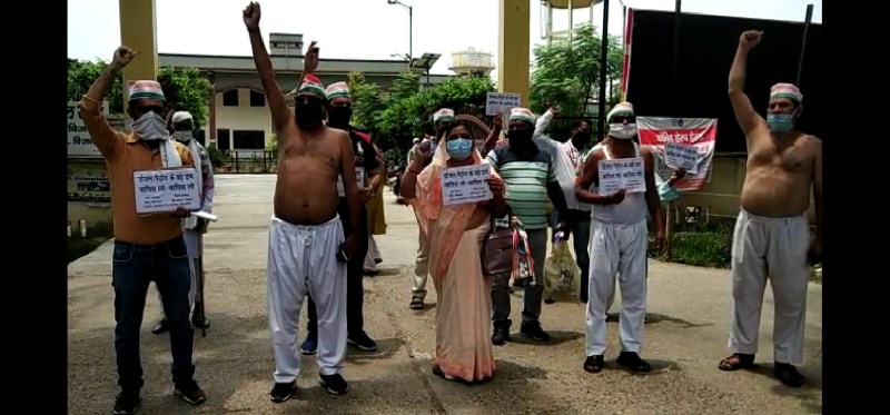 अनलॉक वन में लगातार बढ़ रही पेट्रोल और डीजल की कीमतों को लेकर अब अलग-अलग पार्टी के कार्यकर्ता अनोखे अनोखे तरीके से प्रदर्शन कर पेट्रोल और डीजल की कीमतों को कम करने की मांग कर रहे हैं। इसी मांग को लेकर बुधवार को कांग्रेस के कार्यकर्ताओं ने दफ्तर से प्रदर्शन शुरू कर तहसील ऑफिस पहुंचकर अर्धनग्न अवस्था में एक ज्ञापन देश के प्रधानमंत्री के नाम बिजनौर तहसीलदार को सौंपा है।