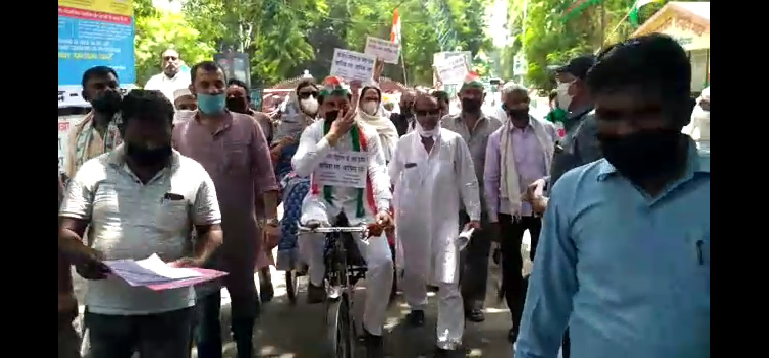 बिजनौर। देश में लगातार बढ़ रही डीजल-पेट्रोल ( diesel price ) की कीमतों के विराेध में कांग्रेसियों ने जाेरदार प्रदर्शन किया। जिला अध्यक्ष ने रिक्शा चलाकर बढ़ रहे पेट्रोल डीजल के दामों का विरोध किया। इस अवसर पर कांग्रेस दफ्तर से कांग्रेसियों ने सैकड़ों की संख्या में इकट्ठा होकर जिला कलेक्ट्रेट पहुंचकर केंद्र सरकार के नाम एक ज्ञापन बिजनौर एसडीएम को सौंपा।