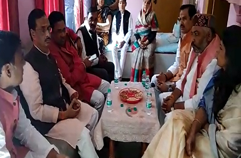साथ ही हर संभव मदद की बात भी ट्वीट में कही थी। इसके बाद अब डिप्टी सीएम दिनेश शर्मा रविवार को लखनऊ के अमौसी एयरपोर्ट से हेलीकॉप्टर द्वारा 10.30 बजे दिवंगत भाजपा विधायक लोकेंद्र चौहान के पैतृक गांव आलमपुरी पहुंचे। इस दौरान उनके साथ भाजपा उत्तर प्रदेश के संगठन महामंत्री सुनील बंसल, राज्यमंत्री स्वाती सिंह व भाजपा प्रदेश उपाध्यक्ष दयाशंकर सिंह सहित कई नेता मौजूद थे। इनसे पहले सीएम योगी और केंद्रीय गृहमंत्री राजनाथ सिंह भी दिवंगत विधायक के घर पहुंचे थे।