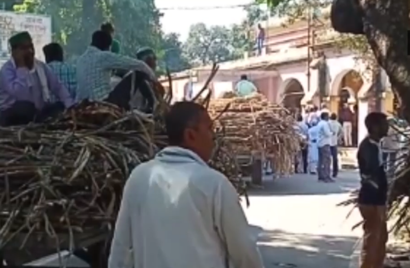शुगर मिल चालू न होने से गुस्साए किसान गन्ना लेकर पहुंच गए कलेक्ट्रेट और कर दिया ये काम
