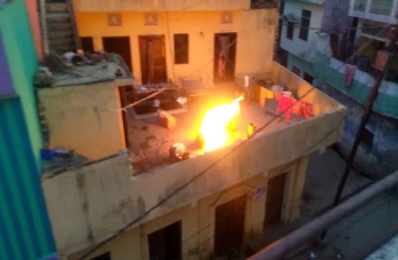 बिजनौर। सिलेंडर से गैस लीक होने के कारण घर मे खाना बनाते समय गैस सिलेंडर में आग लग गई। आग लगने से घर में अफरा-तफरी फैल गई। वही आग लगने के बाद मोहल्ले के लोगों ने सिलेंडर को घर के बाहर लाकर आप पर काबू पा लिया है। सिलेंडर में आग लगने से परिवार का कोई भी व्यक्ति घायल नहीं हुआ है। सिलेंडर में आग लगने के बाद परिजनों में दहशत फैल गई थी।