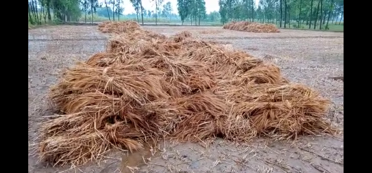 बिजनौर. दो दिन से पड़ रही लगातार बारिश से खेत में पड़ा गेंहू बर्बाद होने की कगार पर पहुंच गया है। इस बारिश से किसान को काफी नुकसान होने की आशंका है। जानवरों के लिए गेंहू की फसल से निकलने वाला भूसा भी पानी में पूरी तरीके से भीग और बह गया है, जिससे कि अबकी बार पशुओं के सामने भी खाने की समस्या पैदा होती नजर आ रही है। अचानक हुई इस बारिश से किसानों को काफी नुकसान पहुंचा है। यानी लॉकडाउन में किसानों को अब की बार दोहरी मार झेलनी पड़ रही है।