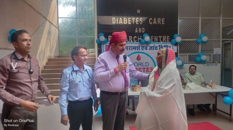 इससे पूर्व एसपी मेडिकल कॉलेज के प्राचार्य एवं नियंत्रक डॉ. गुंजन सोनी, पीबीएम अधीक्षक डॉ.पी.के. सैनी, मेडिसिन विभागाध्यक्ष डॉ. संजय कोचर तथा एंडोक्राइनोलॉजी विभागाध्यक्ष डॉ. हरदेव नेहरा ने कार्यक्रम का उद्घाटन किया। इस दौरान प्राचार्य डॉ. सोनी ने उपस्थित मरीजों में से एक महिला मरीज को शॉल ओढ़ाकर सम्मानित किया और पीबीएम अस्पताल के डॉक्टर्स पर विश्वास जाताने पर आभार व्यक्त किया।डायबिटिक केयर एंड रिसर्च सेंटर की ओर से वरिष्ठ नागरिक भ्रमण पथ पर मधुमेह व रक्तचाप के मरीजों के लिए शिविर लगाया गया। इस मौके पर डॉ. विजय कुमार तुनवाल, डॉ. बाबुलाल मीणा, डॉ. सुभाष गौड़, डॉ. अजय श्रीवास्तव, डॉ. कुलदीप सैनी, डॉ. रविदत्त, डॉ. प्रशान्त बेनीवाल आदि उपस्थित रहे।