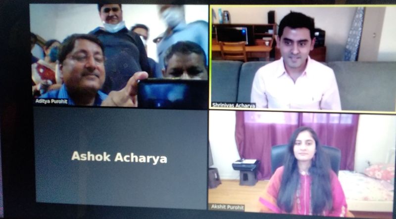 बीकानेर निवासी अशोक चंद्र आचार्य ने अपने पुत्र श्रीनिवास आचार्य की सगाई जोधपुर निवासी डॉ. अरुण कुमार पुरोहित की पुत्री ऐश्वर्या के साथ रविवार को सादगी के साथ की। श्रीनिवास पेशे से इंजीनियर और वर्तमान में अमेरिका के सीएटल शहर में कार्यरत है। पहले दोनों परिवारों और लड़का-लड़की ने बीकानेर आकर सगाई समारोह का कार्यक्रम बनाया था। परन्तु लॉकडाउन और कोरोना संक्रमण के खतरे के चलते ऑनलाइन का निर्णय किया गया। लड़की ऐश्वर्या भी इंजीनियर है और वर्तमान में कनाड़ा के ओटावा शहर में एमएस की पढ़ाई कर रही है। वो भी अपने घर जोधपुर नहीं जा सकी।