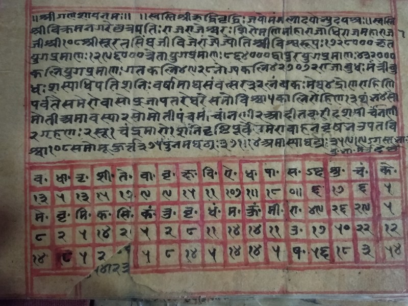 194 साल पुराना हस्तलिखित पंचांग