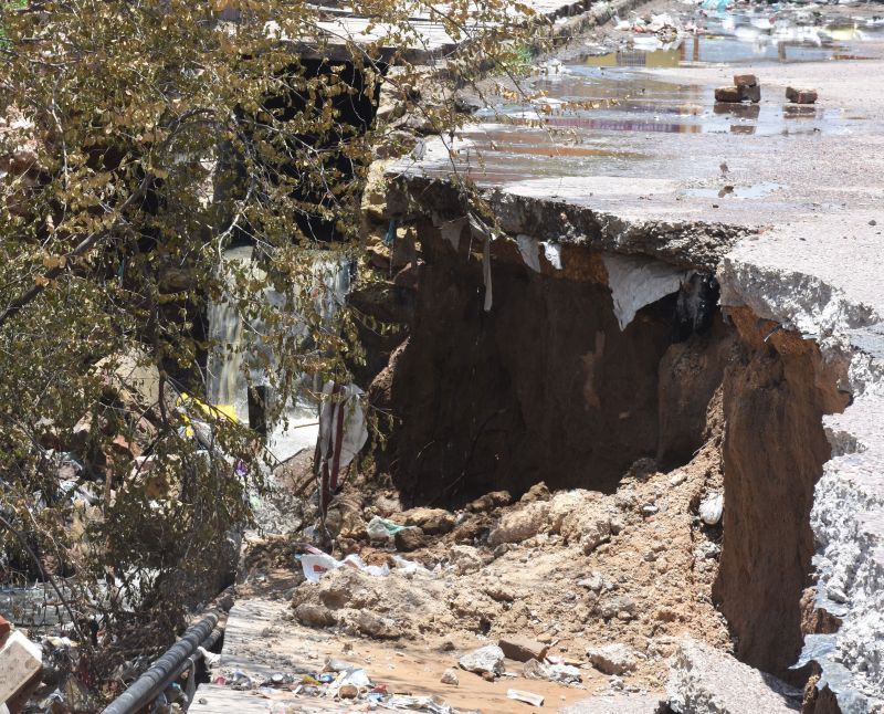 गंदे नाले से पानी लगातार खाई में पहुंचने से खाई सहित नजदीक िस्थत सड़क को भी नुकसान पहुंचा रहा है। पानी के कारण सड़क लगातार धंस रही है। समय रहते इसकों नहीं रोकने पर सड़क और भी धंस सकती है व आस पास िस्थत मकानों व दुकानों को नुकसान पहुंच सकता है। क्षेत्रवासियों में इस बात पर रोष है कि अधिकारी यहां आ रहे है, फोटो खींचकर जा रहे है। धरातल पर कार्य शुरु ही नहीं हो पा रहा है।