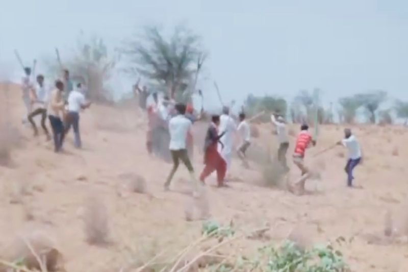 नोखासिंजगुरु में जमीन विवाद को लेकर मारपीट करते हुए।