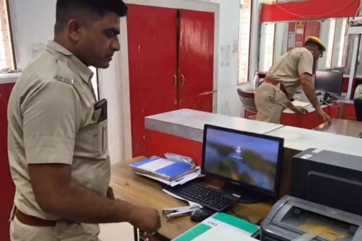 फोटो- पोस्ट ऑफिस चेक करती पुलिस टीम