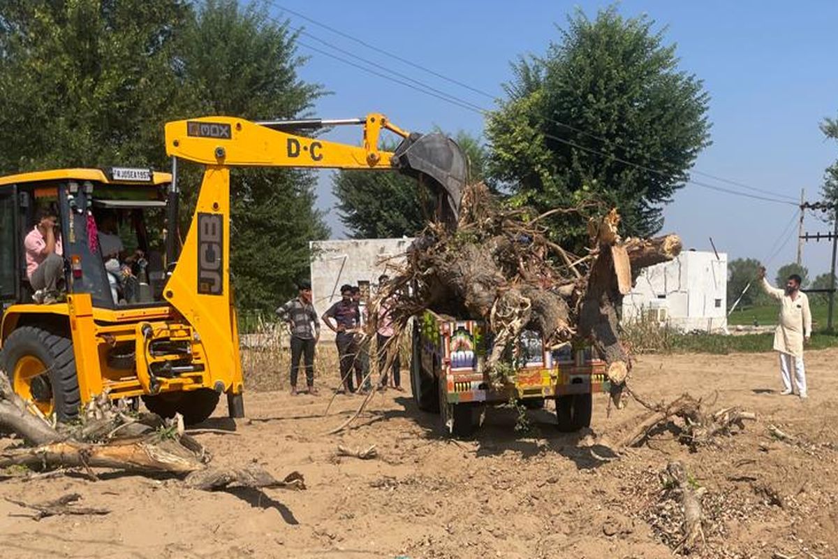 सावंतसर व बादनूं रोही में सोलर प्लांट के लिए जमीन समतलीकरण के नाम कटाई किए गए खेजड़ी के पेड़।
