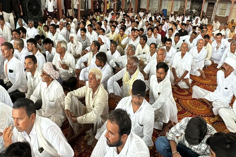 नोखा में मुकाम में आयोजित आमसभा में मौजूद बिश्नोई समाज के लोग।