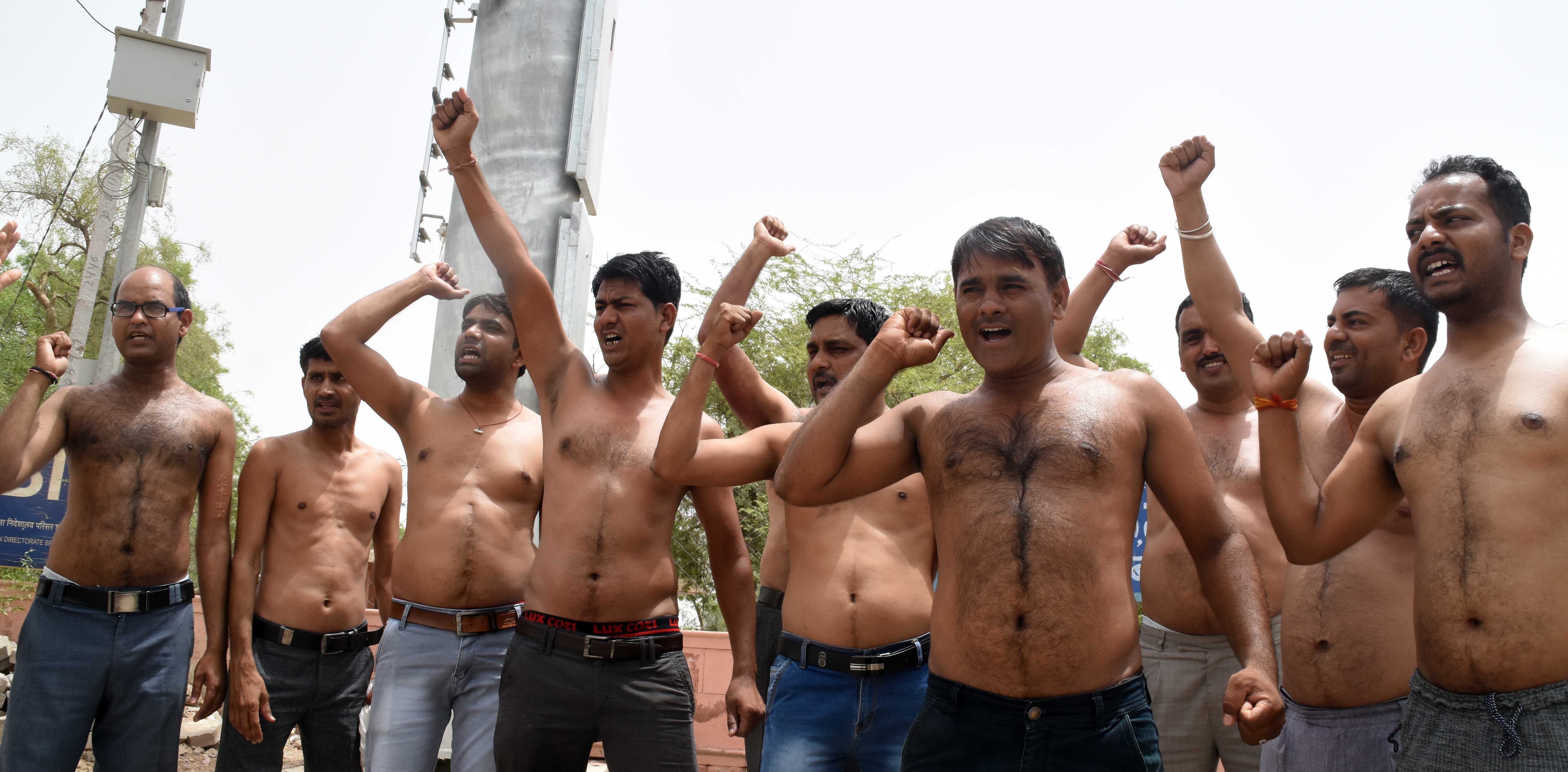 वरिष्ठ शिक्षकों ने किया शिक्षा निदेशालय पर अद्र्धनग्न प्रदर्शन