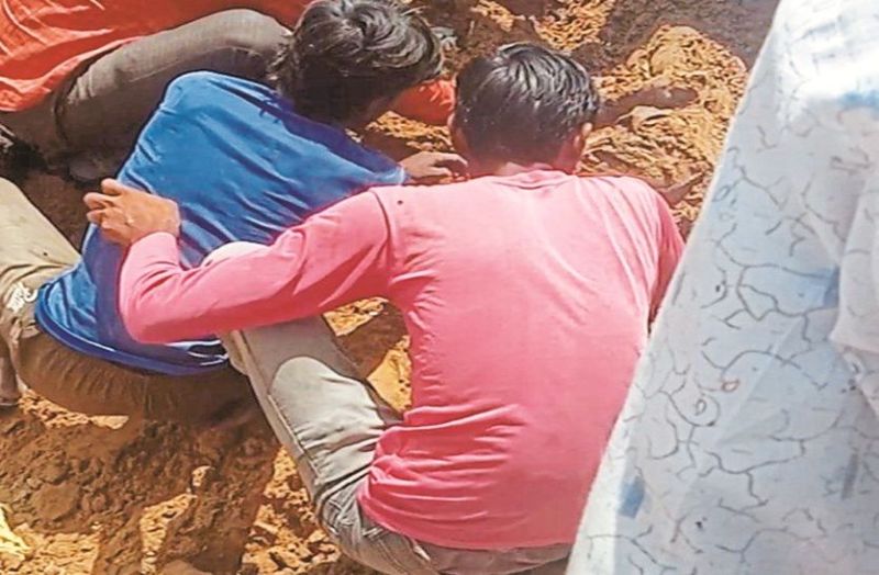 जेसीबी से मिट्टी व मलबे को हटा कर निकाला शव