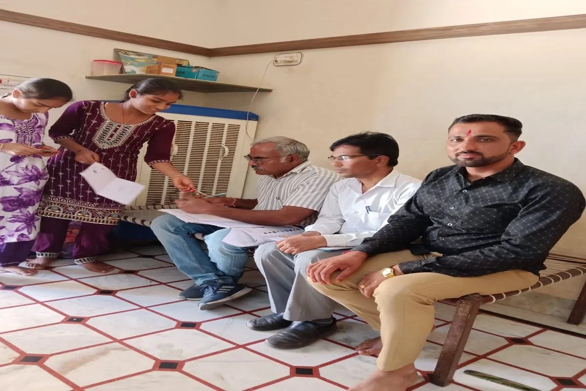 हाउस होल्ड सर्वे के तहत एक घर में जानकारी लेते शिक्षक।