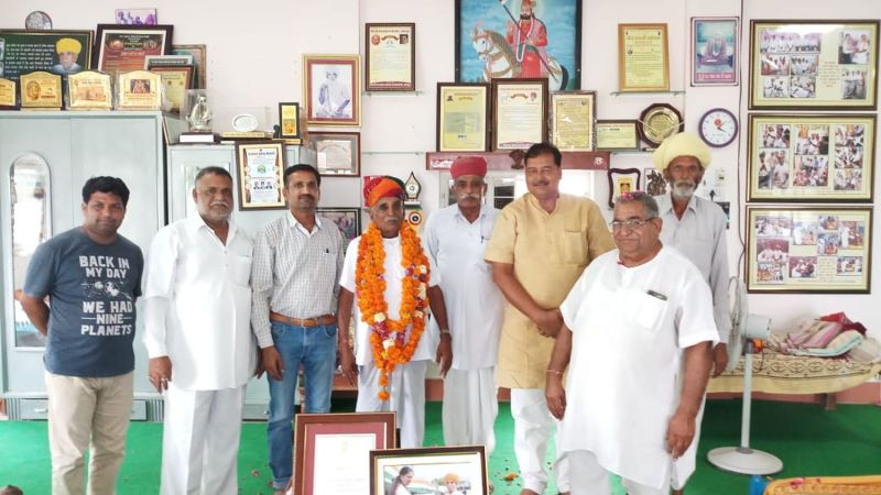 नोखा. स्वतंत्रता दिवस पर मुख्यमंत्री वसुधंरा राजे की ओर से समाज सेवा के लिए गोसेवी पदमाराम कुलरिया को राज्य स्तर पर सम्मानित करने पर इस उपलब्धि पर उनको बधाई देने वालों का तांता लगा रहा। बुधवार को नोखा सहित अन्य क्षेत्रों से प्रबुद्ध लोगों ने कुलरिया की ढाणी मूलवास सिलवा पहुंचकर गोसेवी पदमाराम का अभिनंदन किया।