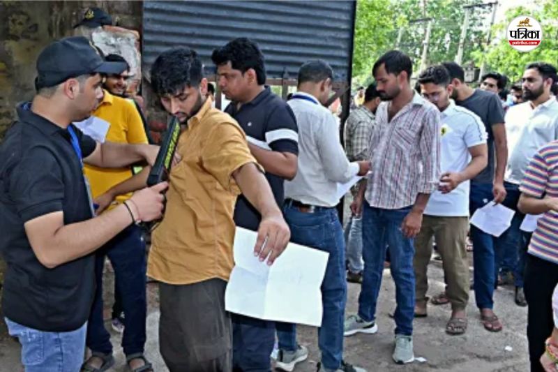 परीक्षार्थियों की जांच करते हुए। पत्रिका फाइल फोटो