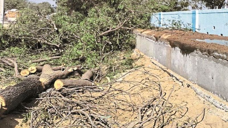 स्टेट हाइवे के लिए नापासर रेलवे फाटक से चुंगी चौकी तक सड़क निर्माण के लिए राजीव गांधी स्टेडियम की दीवार के पास खड़े नीम के बड़े पेड काटने शुरू कर दिए गए हैं। ठेकेदार ने कुछ पेड़ों पर आरी चलाई, तो खबर तेजी से फैली। सूचना मिलने पर नापासर के मोहनलाल ओम नारायण लखानी ट्रस्ट के ट्रस्टी कन्हैयालाल लखाणी व कस्बेवासी मौके पर पहुंचे। उन्होंने पेड़ काटने का विरोध किया। हालांकि, ठेकेदार ने सड़क की चौड़ाई बढ़ाने के लिए पेड़ों को काटने की अनुमति लेने से संबंधित कागजात भी दिखाए।