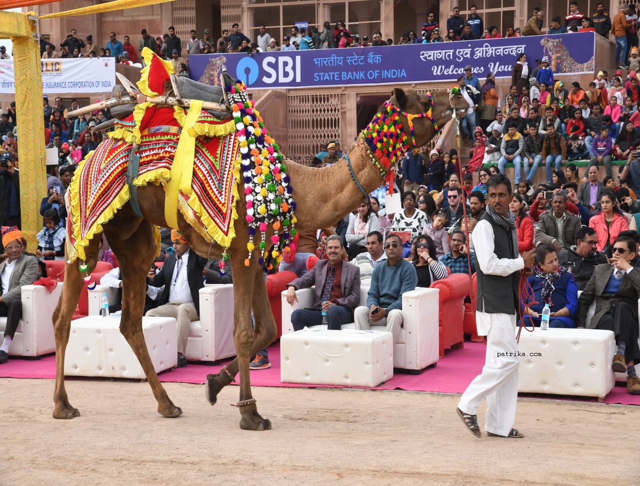शोभायात्रा- जूनागढ़ किला से रवाना होकर डाॅ. करणी सिंह स्टेडियम पहुंची शोभायात्रा के कलाकारों ने भी लोगों का दिल जीत लिया। शोभायात्रा को जिला कलक्टर कुमार पाल गौतम और पुलिस अधीक्षक प्रदीप मोहन शर्मा ने ध्वज दिखाकर रवाना किया। शेाभायात्रा में बड़ी संख्या में राजस्थानी वेशभूषा में छात्राएं मंगलकलश लिए चल रही थीं। वहीं ऊंटों पर बैठे रोबीले और ऊंट गाड़ों पर बैठे विश्व भर से आए सैलानी भी आकर्षण का केन्द्र रहे। शोभायात्रा में ऊंटों का काफिला और अश्व दल भी शामिल थे। राजस्थानी लोक अंचलों से आए कलाकार गींदड़, डांडिया नृत्य, आदिवासी मयूर नृत्य, कालबेलिया नृत्य, चंग के साथ नृत्य, नख से शिख तक श्रंृगारित ऊंट, सफेद घोड़ी नृत्य करते हुए, फर कटिंग किए हुए अपने शरीर पर बेलबूटे, देवी-देवताओं के चित्र उकेरे ऊंट, कलश लिए राजस्थानी वेशभूषा में युवतियां, बुलेट मोटर साइकिल पर सवार युवक राष्ट्रीय ध्वज लिए हुए थे। शोभायात्रा में अफ्रीकी देश का नृत्य भी प्रस्तुत किया गया, जिसे लोगों ने खूब सराहा।