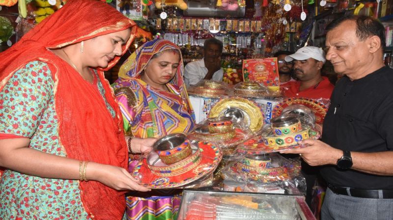 सजा करवों का बाजार, पसंद आ रही फैंसी थाली