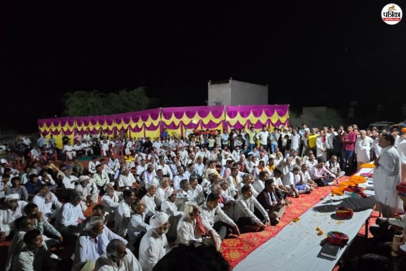 लूणकरनसर के ग्राम राजेरां में आयोजित कार्यक्रम में उद्बोधन देते खाद्य मंत्री सुमित गोदारा। (फोटो-पत्रिका)