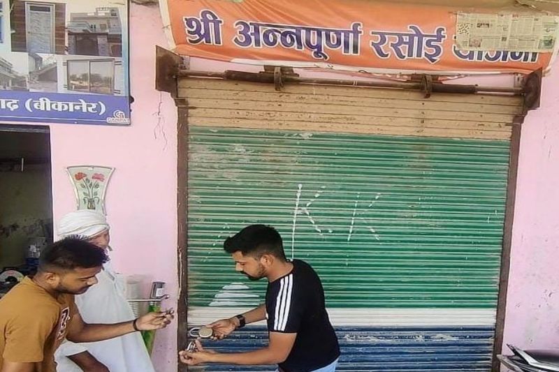 श्रीडूंगरगढ़.अन्नपूर्णा रसोई पर ताला लगाते हुए।