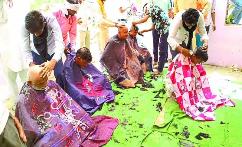 60 से अधिक लोगों ने सिर मुंडवाया, 28 बैठे अनशन पर