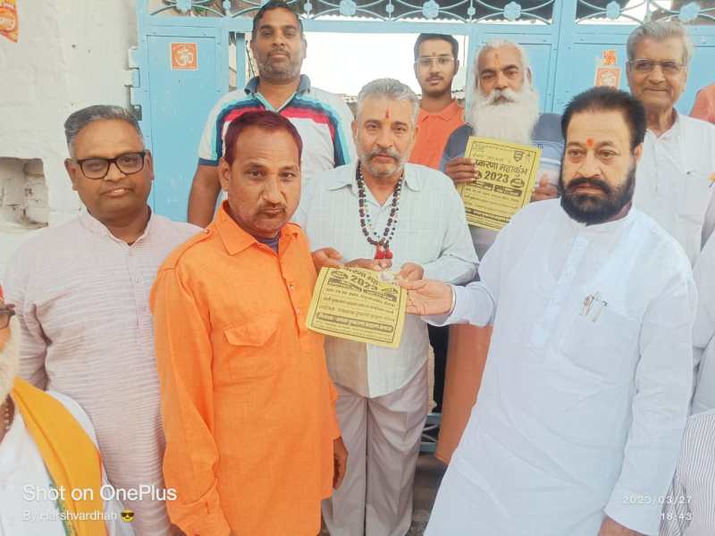इस अवसर पर आयोजन संयोजक महेश व्यास व भंवर पुरोहित ने बताया कि महाकुंभ के लिए समाज के प्रत्येक घर पर पहुंचकर निमंत्रण पत्र एवं पीले चावल भेंट कर कार्यक्रम में शामिल होने का निमंत्रण दिया जा रहा है। लाली माई पार्क, ब्रह्म बगीची, विवेकनाथ बगीची के आस पास के क्षेत्रों में जनसंपर्क कर निमंत्रण दिया गया। इस अवसर पर राजकुमार किराडू, नवरतन व्यास, मुन्ना भादाणी अरविन्द व्यास राजा, नथमल व्यास, रामनाथ व्यास, दिनेश चुरा, श्रीनारायण जोशी,नवनीत पुरोहित, पंडित गोपाल व्यास, सुभाष जोशी, रामस्वरूप हर्ष सहित समाज के लोग शामिल रहे।