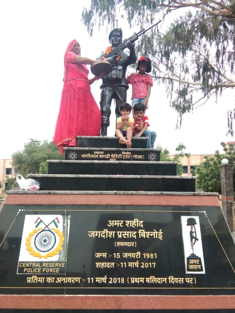 देश की रक्षा करते हुए शहीद जगदीश बिश्नोई की बहन सुमित्रा भी राखी बांधने के लिए प्रतिमा स्थल पहुंची। अपने भाई शहीद जगदीश की प्रतिमा पर राखी बांधते भावुक हो गई। बाद में भारी मन से शहीद प्रतिमा की कलाई पर राखी बांधकर याद किया।