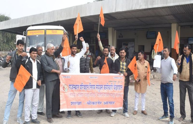 बीकानेर. राजस्थान परिवहन निगम संयुक्त कर्मचारी फैडरेशन की ओर से दो माह के बकाया वेतन, पेंशन एवं बसों की खरीद, भर्ती एवं अन्य मांगों को लेकर आंदोलन शुरू किया गया है। सोमवार को केन्द्रीय बस स्टैंड परिसर में प्रदर्शन हुआ। बाद में कर्मचारी रैली के रूप में अध्यक्ष बंशीलाल राजपुरोहित एवं शाखा सचिव ओमप्रकाश सिद्ध के नेतृत्व में प्रबंधक (संचालन) नेमीचंद प्रजापत से मिले और उन्हें मांगों का ज्ञापन सौंपा। कर्मचारियों ने कलक्टर को मुख्यमंत्री एवं प्रबंधक (संचालन) प्रजापत को प्रबंध निदेशक के नाम ज्ञापन दिया। प्रदर्शन में विनोद कुमार भाकर, महेश कुमार, अमरचंद दहिया, भंवरलाल सारण, गजेन्द्रसिंह, धर्मपाल सहित अनेक कार्मिक शामिल थे।