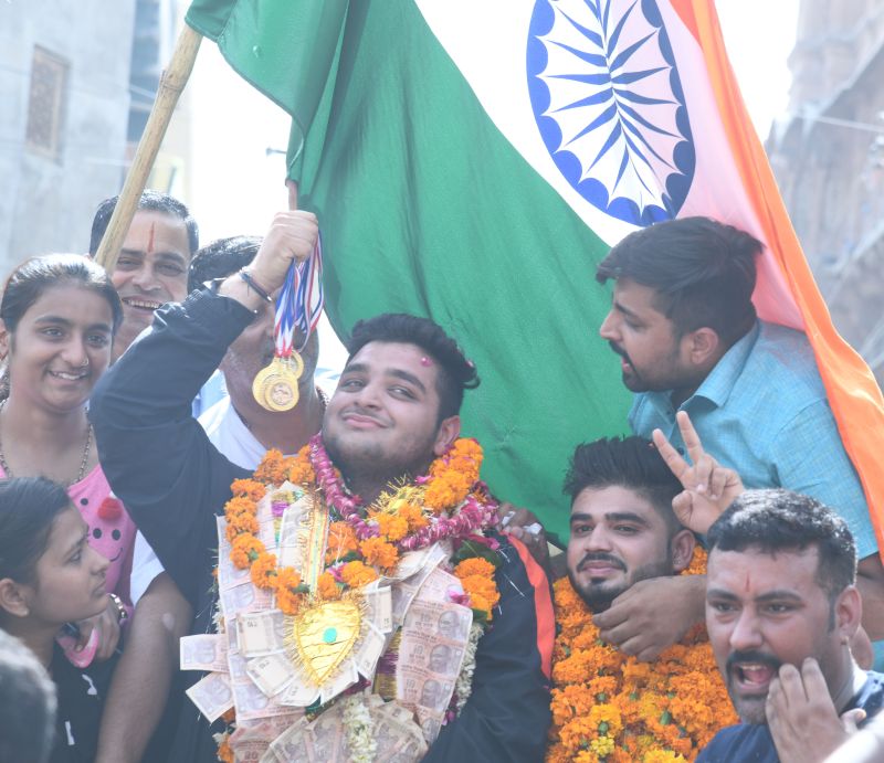 चार स्वर्ण पदक जीतकर लौटे रोहित ओझा का स्वागत