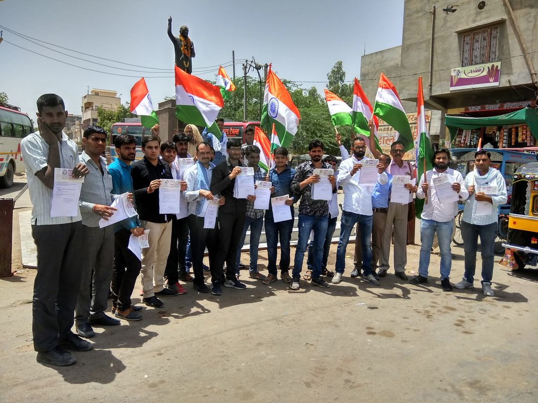 आरटीआई एक्टिविस्ट रामरतन जाखड़ के नेतृत्व में युवा कार्यकर्ता अंबेडकर सर्किल पर एकत्रित हुए। यहां से तिरंगे के साथ रैली निकालते हुए नगरपालिका पहुंचे। पालिका अधिशाषी अधिकारी रामकिशोर को आरटीआइ के आवेदन सौंपे। इस दौरान मनफूल कुलरिया, जेठाराम कुलरिया, किशोर राजपुरोहित, मगनाराम केड़ली, दिनेश सारण, अंकुर शुक्ला, हनुमान शर्मा, निशांत गौड़ आदि मौजूद रहे।