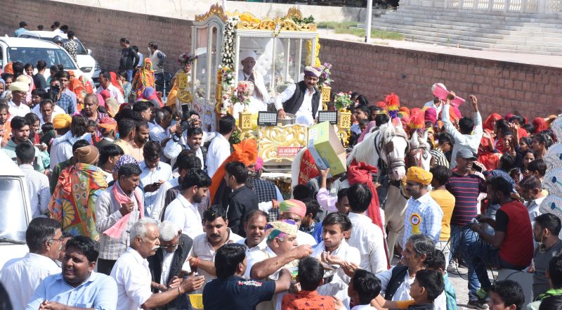 शोभायात्रा का पुष्पवर्षा से स्वागत, गूंजे जयकारे