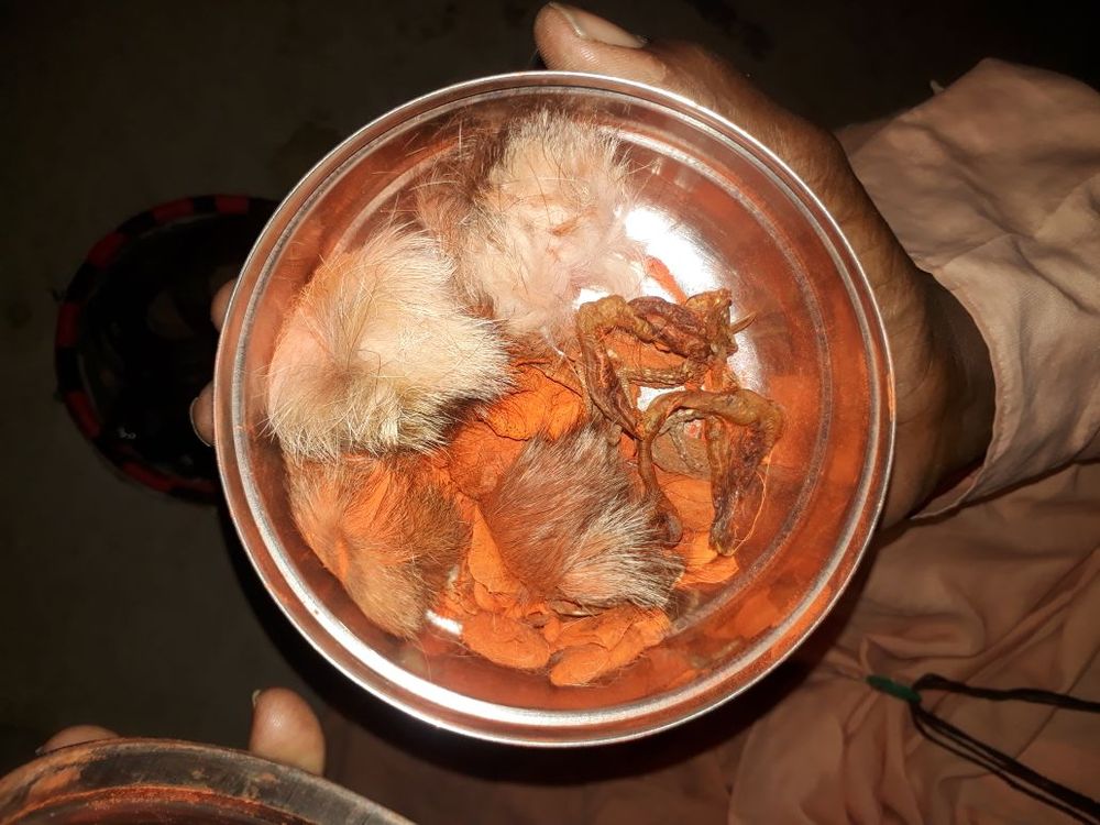 बीकानेर. जीव रक्षा संस्था के पदाधिकारियों ने शनिवार को एक सपेरे को पकड़कर वन्यजीव कार्यालय के कंट्रोल रूम के सुपुर्द किया। सपेरे के कब्जे से एक सांप और कुछ जीव-जन्तुओं की सिंदूर से रंगी हड्डियां व खाल बरामद की गई है।