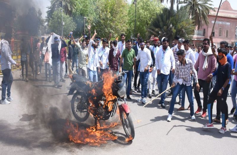 पूर्व मंत्री वीरेंद्र बेनीवाल, प्रदेश कांग्रेस सचिव जिया उर रहमान आरिफ और गजेंद्र सिंह सांखला ने कहा कि भाजपा की कथनी और करनी में अंतर है। इसी दौरान कार्यकर्ताओं ने मोटर साइकिल में आग लगा कर यह दर्शाया कि केंद्र सरकार की नीतियों के चलते उन्हें मोटरसाइकिल भी रख पाना मुश्किल हो गया है। उनका दूसरा संदेश था कि केंद्र सरकार की ओर से पेट्रोल डीजल के दामों पर कोई अंकुश न होने के कारण वाहनों में आग लगने की स्थिति है।