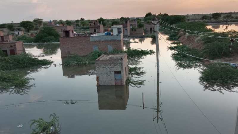 बीकानेर. शहर में शुक्रवार अलसुबह हुई तेज बारिश से पानी की बढ़ी मात्रा से सुजानदेसर में सोमारनाथ कुटिया क्षेत्र में खुदखुदा डेरे के पास गंदे पानी के नाले की पाल टूट गई। पाल टूटने से बड़ी मात्रा में गंदा पानी आस-पास के आवासीय क्षेत्र में पहुंच गया। अचानक आवासीय क्षेत्र में पानी भरने से लोग भयभीत हो गए और कई परिवारों के लोग मकान छोडक़र पास स्थित मंदिर और खुले स्थान की ओर चले गए। जबकि कुछ परिवारों के लोग घरों की छतों पर चढ़ गए। क्षेत्र में स्थित गंदे पानी की झील के पानी को रोकने के लिए बनी हुई कई फीट तक पाल टूटने से करीब आधा किलोमीटर क्षेत्र में गंदा पानी शाम तक भर गया। आवासीय क्षेत्र की ओर पानी के पहुंचने का सिलसिला रात तक चलता रहा।