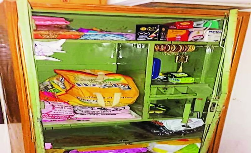 शनिवार सुबह उसके बच्चे घर गए, तो मकान के ताले टूटे थे और अंदर सामान बिखरा था। उसके बच्चों ने फोन कर उसे घटना के बारे में बताया। उसने जयपुर से आकर घर संभाला, तो कमरे में रखी आलमारी से दो लाख 35 हजार रुपए नकदी, पांच किलो चांदी और सोने के आभूषण गायब थे। इसमें आठ जोड़ी चांदी की पायजेब, 10 नग बिछुड़ी, 10 नग चांदी के लॉकेट, दो चांदी की अंगूठी सेट, 10 नग चांदी के सिक्के, ढ़ाई भरी सोने की कंठी, तीन भरी के तीमणयां, दो भरी की दो कान पत्ता की जोडी, सोने के कान बाला, छह जोड़ी सोने की अंगूठी, डेढ भरी सोने का मंगलसूत्र आदि आभूषण शामिल थे।
