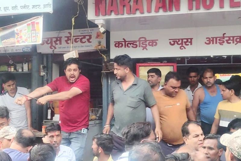 श्रीडूंगरगढ़. चाकू से हाथ की नस काटने की धमकी देता दुकानदार।