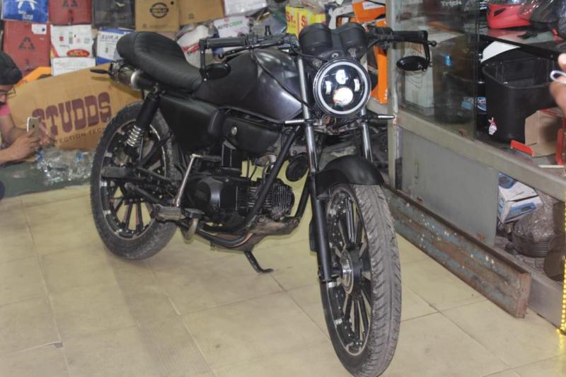 इंजन के एगजॉस्ट सिस्टम को बदला गया है और पाइप को सीट के बीच से निकाला गया है और बाइक के दोनों तरफ बैलेंस को बराबर कर दिया गया है। पुरानी सीट की जगह पर कैफे रेसर सीट लगाई गई है जो कि आरामदायक भी है और स्टाइलिश भी है। नए ट्यूबलैस टायर लगाए गए हैं, जो कि दमदार लग रहे हैं। नए हैंडलबार दिए गए हैं जो कि मिरर से लैस हैं और लुक को जबरदस्त बना रहे हैं।