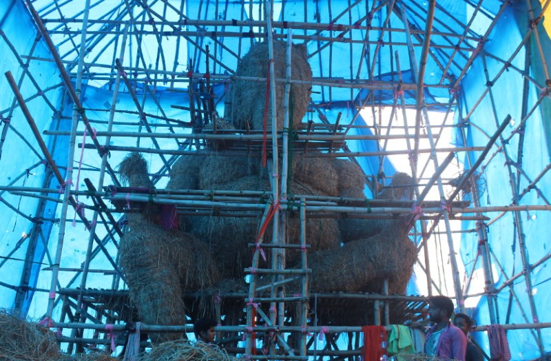 मिट्टी व पैरा से बन रही मूर्ति : पर्यावरण प्रदूषण को ध्यान में रखते हुए पर्यावरण संरक्षण के लिए मिट्टी व पैरा से गणपति की मूर्ति तैयार की जा रही है। इसके लिए तीन ट्रैक्टर पैरा, 2 ट्रेक्टर मिट्टी, 200 बांस, 2 क्विंटल रस्सी व वाटर कलर का इस्तेमाल किया जा रहा है।
