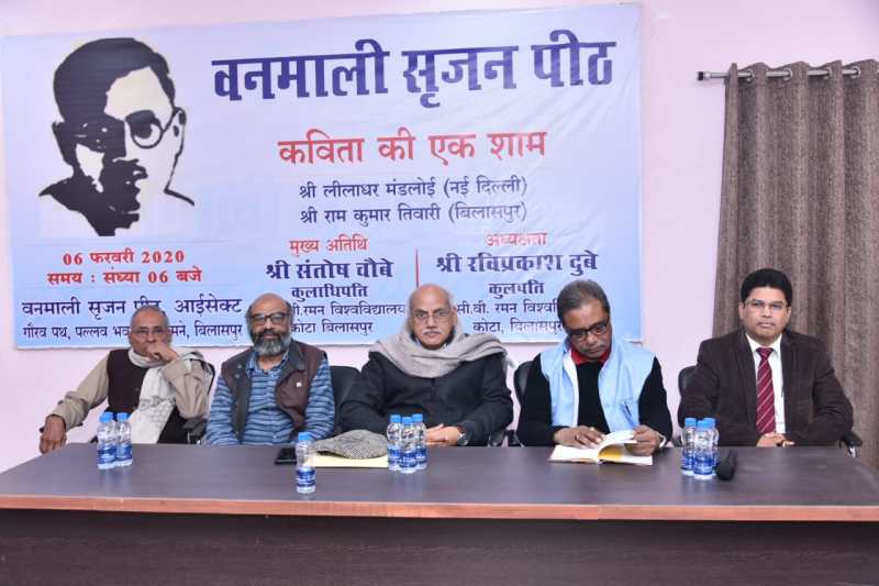 बिलासपुर। वनमाली सृजन पीठ में "कविता की एक शाम" कार्यक्रम का आयोजन किया गया। जिसमें आकाशवाणी और दूरदर्शन के पूर्व महानिदेशक और नया ज्ञानोदय के पूर्व संपादक और वरिष्ठ साहित्यकार लीलाधर मंडलोई , साहित्यकार रामकुमार ने अपनी कविताओं का पाठ किया।