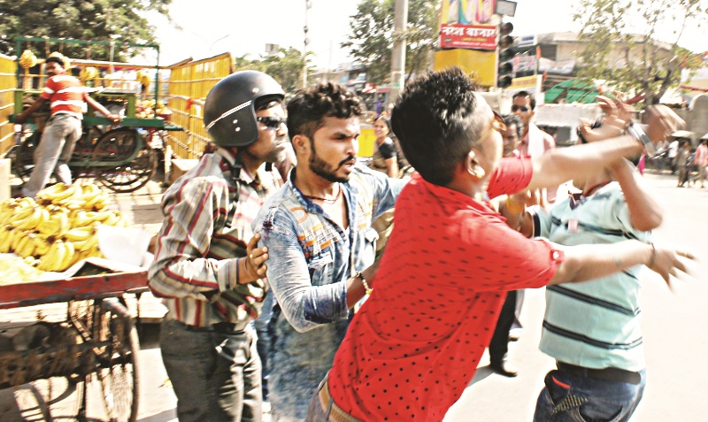 पुराना बस स्टैंड में सड़क से हटाने के दौरान फल ठेले वालों ने नगर निगम अतिक्रमण निवारण शाखा के कर्मचारियों से मारपीट कर दी। बीच सड़क पर मारपीट होता देखकर भीड़ लग गई। किसी तरह आसपास के व्यापारियों ने बीच बचाव कर मामला शांत किया। घटना शुक्रवार को दोपहर डेढ़ बजे की है। पुराना बस स्टैंड में करबला रोड, हनुमान मंदिर और बस स्टैंड जाने वाले मार्ग पर रोजाना ठेले वालों का जमघट लगा रहता है। इससे यातायात बाधित होता है। कई बार यह स्थिति हादसे की वजह बनती है। यातायात पुलिस व निगम प्रशासन द्वारा इन्हें कई बार हटाया गया, लेकिन ठेले वाले फिर से यहां कब्जा लेते हैं।