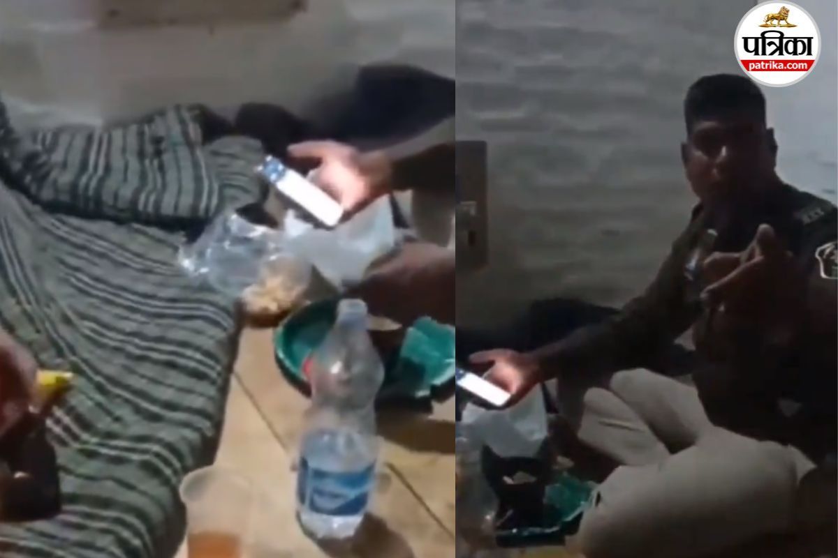 वर्दी में शराब पार्टी (फोटो सोर्स- पत्रिका)