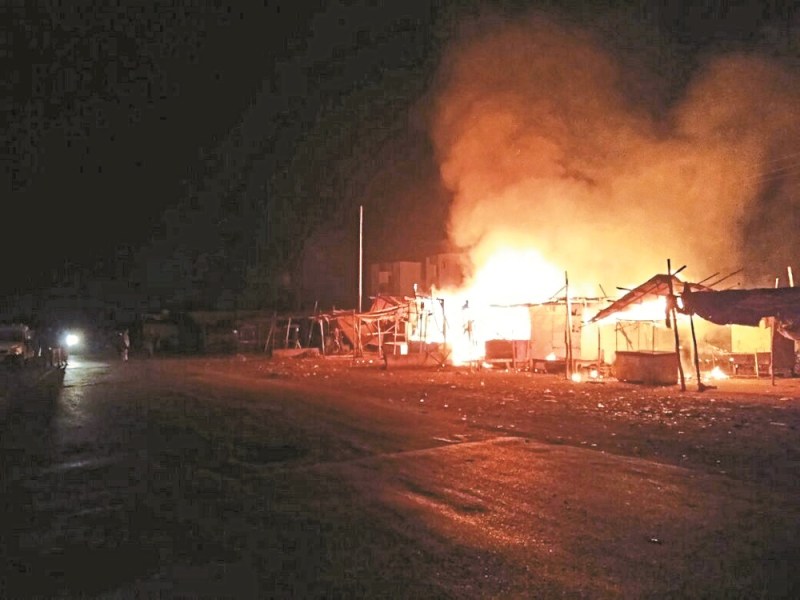 बिलासपुर . तिफरा थोक फल व सब्जी मंडी के सामने भोजनालय, होटल और सब्जी दुकान में रविवार रात अज्ञात तत्वों ने आग लगा दी। होटल और भोजनालय में गैस सिलेण्डर रखे थे। आग से सिलेण्डर ब्लॉस्ट होते तो थोक सब्जी व फल मंडी का नामो निशान नहीं बचता। आगजनी के बाद नगर सेना की दो दमकलों से आग पर काबू पाया गया। आगजनी में 25 दुकानें जलकर खाक हो गईं। व्यवसायियों ने मंडी के कैंटीन संचालक पर आग लगाने का आरोप लगाकर सिरगिट्टी थाने में शिकायत दर्ज कराई है। जानकारी के अनुसार संभाग के सबसे बड़े थोक फल व सब्जी मंडी तिफरा के सामने शहर में रहने वाले 35 व्यवसायी भोजनालय, होटल और फुटकर सब्जी दुकान लगाते हैं। रविवार को रात 8 बजे दुकानें बंद कर सभी व्यवसायी अपने-अपने घर चले गए थे। रात 10 बजे भोजनालय और दुकानों में अज्ञात लोगों ने आग लगा दी। आगजनी होटल और दुकानों में तेजी से फैल गई। आग की सूचना मिलने पर सिरगिट्टी पुलिस मौके पर पहुंची और आग बुझाने का प्रयास किया। होटलों में रखे गैस सिलेण्डर के आसपास भीषण आग थी। पुलिस कर्मियों और व्यवसायी सिलेण्डर के ब्लॉस्ट होने के डर से भागने लगे। पुलिस ने आगजनी की सूचना नगर सेना के दमकल कर्मियों को दी। दमकल कर्मी दो फायर वाहनों समेत मौके पर पहुंचे और आधे घंटे की मशक्कत के बाद आग पर काबू पाया। आगजनी में करीब 25 दुकानें जलकर खाक हो गई।