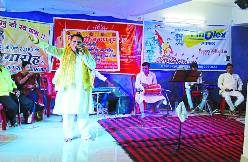 रेलवे क्षेत्र स्थित श्री जगन्नाथ मंदिर में रथयात्रा उत्सव चल रहा है। श्री जगन्नाथ मंदिर सेवा समिति का भव्य आयोजन है। महाप्रभु जगन्नाथ रथयात्रा के माध्यम से मौसी गुंडिचा के घर पहुंचे हैं, जहां मौसी मां अपने लाडले जगन्नाथ का खूब सत्कार करते हुए लाड कर रही हैं। मंदिर समिति के उपाध्यक्ष केके बेहरा ने बताया कि मौसी के घर महाप्रभु का शनिवार को अंतिम दिन है अब रविवार को मौसी मंदिर से विदा लेकर श्री मंदिर के लिए रवाना होंगे। महाप्रभु सात दिनों तक मौसी के घर विश्राम कर खातिरदारी का आनंद ले रहे हैं। शनिवार की शाम साईं भजन मंडली व जगन्नाथ भजन मंडली की ओर से महाप्रभु के लिए भजन कार्यक्रम का आयोजन किया गया। जिसमें महाप्रभु के गुणों का बखान किया गया, जिसे सुनकर प्रभु आनंदित हुए साथ ही भक्तों ने महाप्रभु को प्रसन्न करने उनकी पसंदीदा वस्तुओं को पूजन के दौरान अर्पित किया। पुजारी गोंविद प्रसाद पाढ़ी ने मौसी के घर महाप्रभु की विधि-विधान से पूजा-अर्चना करते हुए महाआरती कराई। इस अवसर पर मंदिर समिति के अध्यक्ष पीके सामंतराय, उपाध्यक्ष केके बेहरा, सचिव गजेन्द्र प्रसाद दास, सह सचिव एमके दास, एमके मोहंती, डी नायक, के पात्र, आरसी प्रधान, बीबी मोहंती, सीआर बाग, एसए मोहंती, एनसी जैना, सूर्यामनी बेहरा, एस बेहरा, रतीकांत पात्रा, आरके मोहंती, एके सरंगी, एसी बेहरा, एसके गोंडा, पीके पटनायक सहित बड़ी संख्या में मंदिर समिति के सदस्य उपस्थित थे।