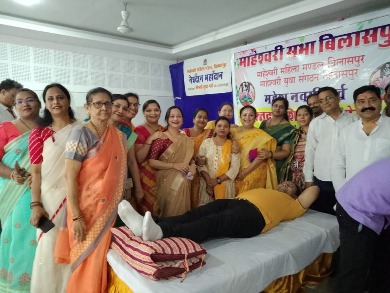 माहेश्वरी महिला मंडल द्वारा सुबह 10 से 1 तक उद्योग भवन सीएमडी चौक में आयोजित रक्तदान शिविर में पेय पदार्थ का वितरण किया गया। 34 यूनिट रक्त बिलासा ब्लड बैंक में संग्रहित हुआ। जरूरतमंद लोगों को इसका लाभ मिलेगा। ऐसे शिविर लगाने से अलग-अलग ग्रुप का ब्लड इक_ा होता है। महिलाओं ने भी उत्साह से रक्तदान किया। रक्तदान शिविर में समाज के उद्योगपति सुनील मारदा का सहयोग प्राप्त हुआ। आयोजन में माहेश्वरी सभा नवयुवक मंडल महिला मंडल का सक्रिय सहयोग रहा। सभी को अध्यक्ष ने बधाई दी।