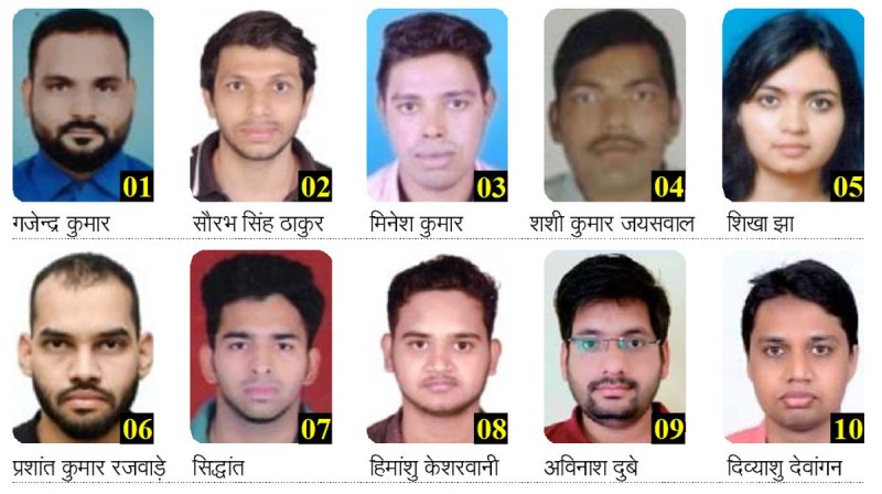 रैंक वन में गजेंद्र कुमार को 150 , दूसरे नंबर पर सौरभ ङ्क्षसह परिहार को 144.134, तीसरे नंबर पर मिनेश कुमार को 143.575, चौथे नंबर पर शशि कुमार जायसवाल को 143.017, पांचवें नंबर पर शिखा झा को 142.457, छठे नंबर पर प्रशांत कुमार राजवाड़े को 141.899, सातवें नंबर पर सिद्धांत को 140.782, आठवें नंबर पर हिमांशु केशरवानी को 140.503, नौवें नंबर पर अविनाश दुबे को 140.503 और दसवें नंबर पर दिव्यांशु देवांगन को 140.223 अंक मिले हैं।