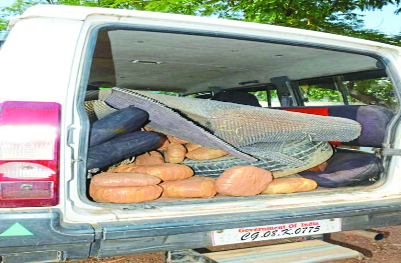 दुर्घटना हुई तो कार छोड़कर भागे तस्कर : 23 जून को कोनी थानांतर्गत कोनी-मोपका बाइपास पर पुलिस को दुर्घटनाग्रस्त सफेद रंब की कार सीजी 08 के 0775 मिली थी। पुलिस ने कार की तलाशी लेने पर दरवाजों के रेगजीन के कवर के अंदर 1-1 किलो के पैकेट में भरा 66 किलो गांजा मिला था। कार खैरागढ़ निवासी प्रमीला यादव के नाम पर दर्ज है।