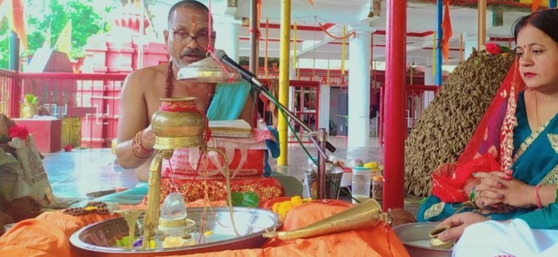 बिलासपुर ञ्च पत्रिका. श्रावण मास में श्री पीताम्बरा पीठ सुभाष चौक सरकंडा स्थित त्रिदेव मंदिर में श्री शारदेश्वर पारदेश्वर महादेव का श्री महारूद्राभिषेकात्मक महायज्ञ 4 जुलाई से लगातार हो रहा है। शनिवार को प्रात: कालीन पूजा मेंं नवल कसेर, ऊषा कसेर, कु.प्रार्थना कसेर, नितिन कसेर उपस्थित थे। शनि प्रदोष पूजा सायंकालीन 4.30 बजे से प्रारंभ हुआ। इसमें हर्ष मिश्रा, किशोरी लाल मिश्रा पुस्तकालय बिलासपुर उपस्थित थे। रविवार को संध्या 5 बजे से बाबाधाम देवघर से पधारे हुए कलाकार अजीत, मनोज के द्वारा भक्ति भजन संध्या का आयोजन किया जाएगा। इसके साथ मंदिर में 27 नवंबर तक श्री पीतांबरा हवनात्मक महायज्ञ भी चल रहा है, जिसमें 36 लाख आहुति दी जाएगी। पीठाधीश्वर आचार्य दिनेश ने बताया कि शास्त्रों में बताया गया है कि वर्षा हेतु जल से, पशु हेतु दधि से, धन हेतु मधु से, पुत्र हेतु गौ दुग्ध से, व्याधि शांति हेतु कुश जल में, लक्ष्मी हेतु ईख(गन्ना) के रस से, मोक्ष हेतु तीर्थ जल जैसे अनेक प्रकार से अभिषेक किया जाता है।